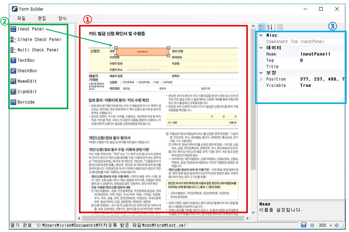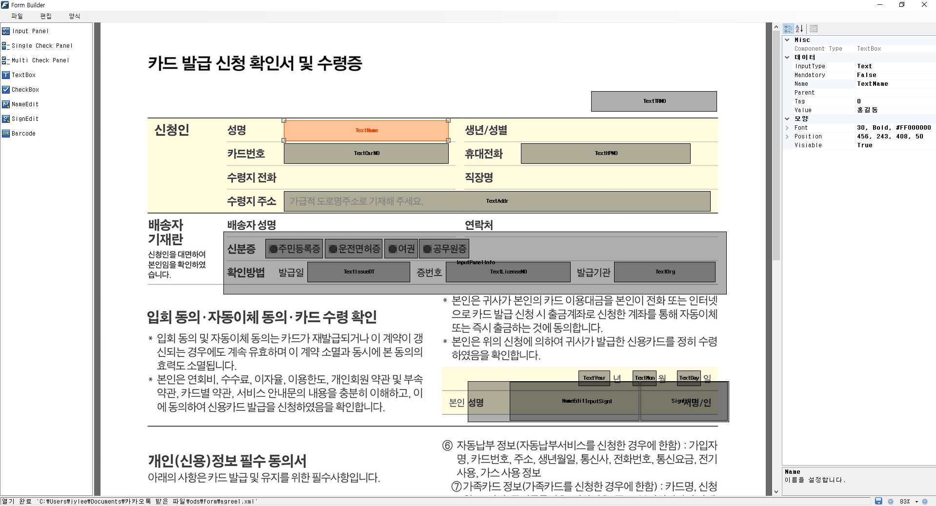 서명, 사진, 바코드 등 필요한 부분에 드래그 후 크기를 조절하고, 필요에 따라 해당 영역에 간단한 조작만 하면 됩니다.